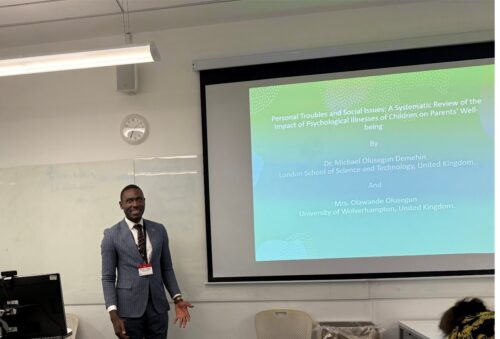 When Dr Michael Olusegun Demehin, DMU Course Coordinator, Module Lead and Senior Lecturer in Health and Social Sciences, at LSST Birmingham, stepped onto the podium at Northumbria University, he did more than present another paper at the British Sociological Association’s Medical Sociology Conference – he reframed a quiet crisis. His systematic review, Personal Troubles and Social Issues: A Systematic Review of the Impact of Psychological Illnesses of Children on Parents’ Well-being, unravels how what is commonly perceived as a private, child-centred pathology spills – inevitably and persistently – into both the fabric of family life and public services.
