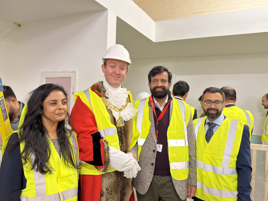 Ulfat Hussain, LSST’s Operations Manager, is commended for his work in the development of LSST’s Construction Training Centre. (l-r) Cllr Mili Patel, Deputy Leader of Brent Council, The Mayor of Brent, Ulfat Hussain, LSST’s Operations Manager, and Krupesh Hirani AM, London Assembly Member for Brent and Harrow. Photo: LSST.