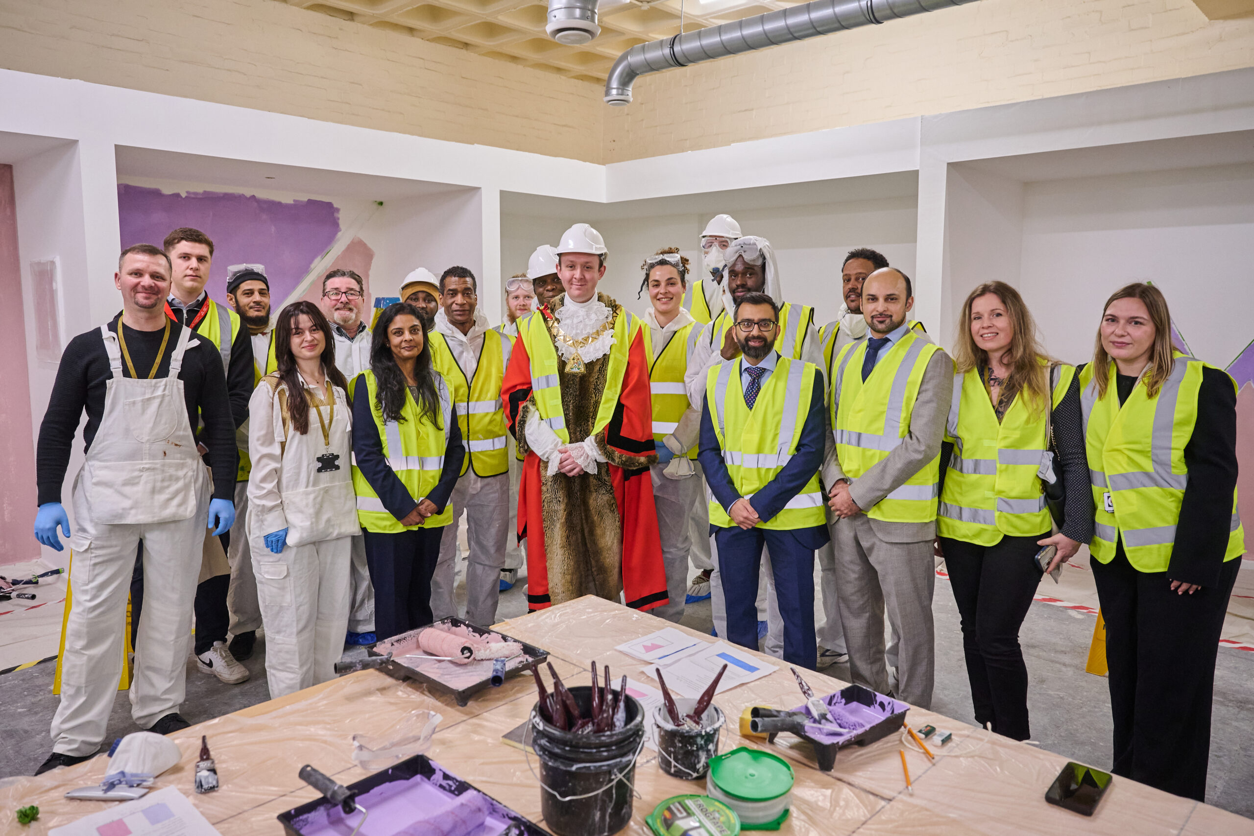 Building futures and not just skills. The Mayor of Brent meets LSST cohorts on the Painting and Decorating Skills Bootcamp, recognising learner commitment and dedication. Photo: LSST.